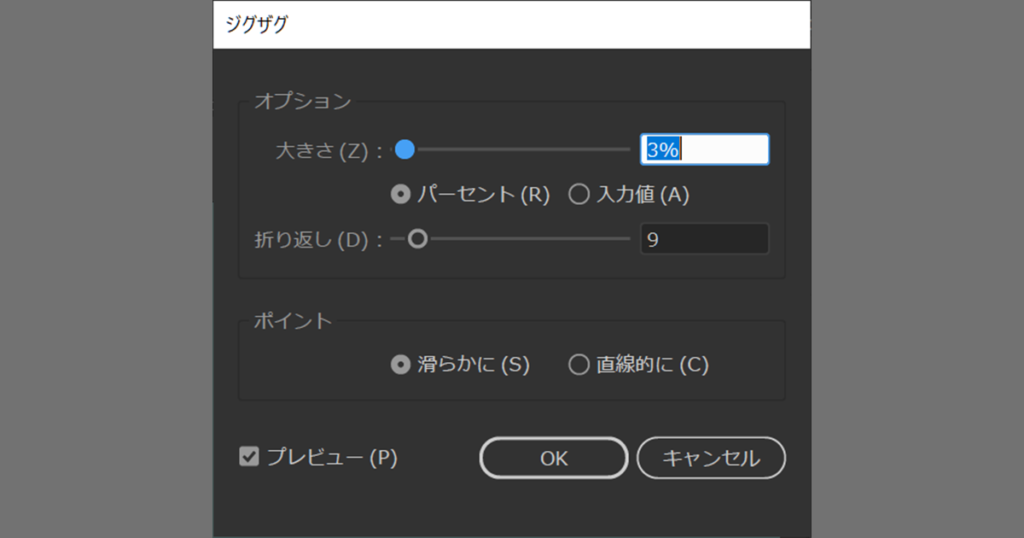 - ジグザグの大きさの設定が「入力値」になっていないか